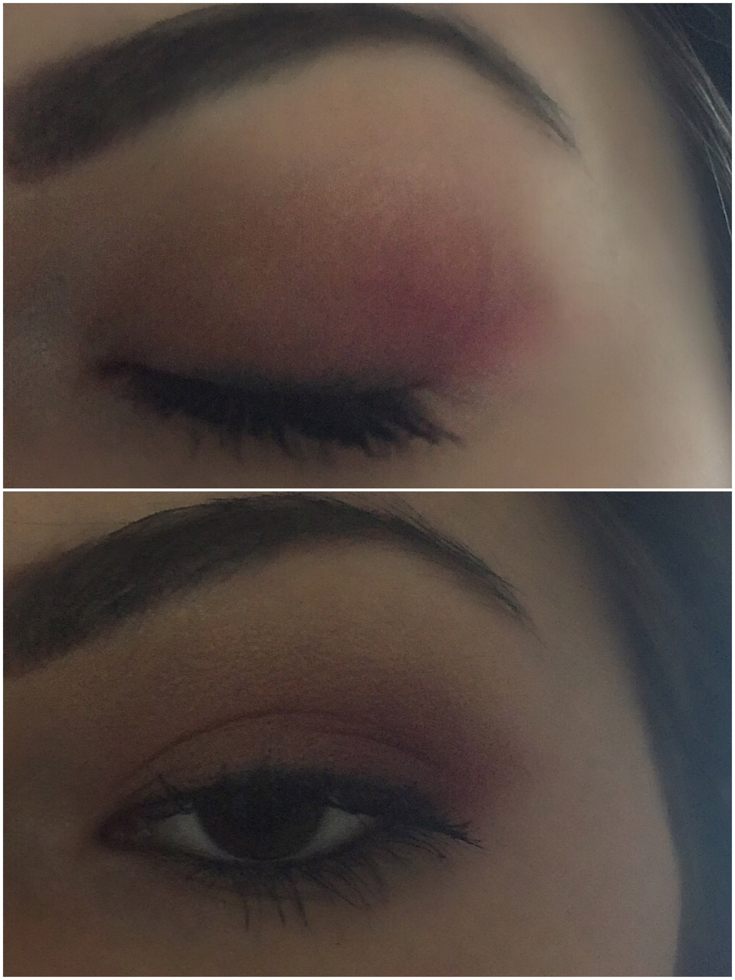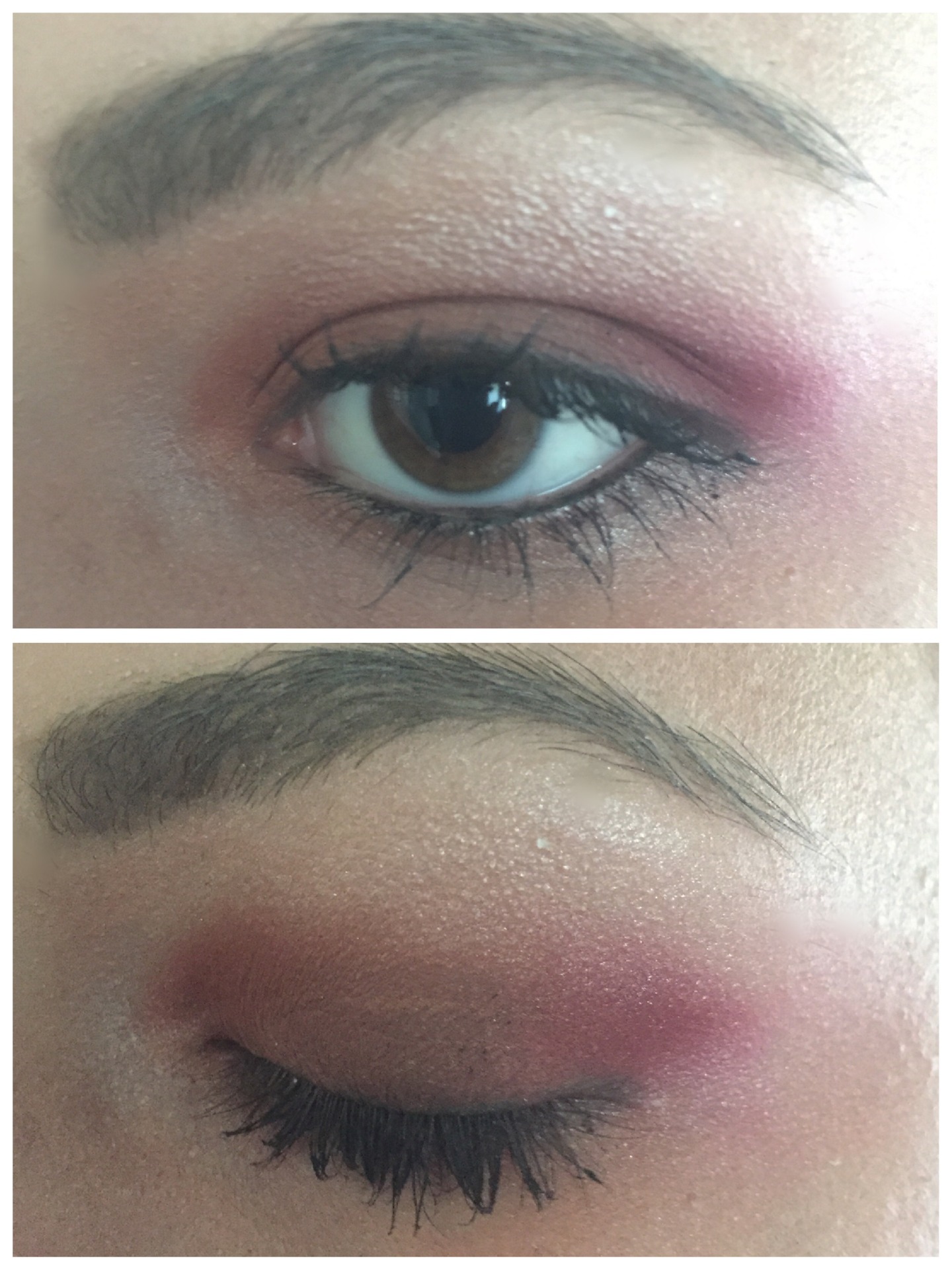 DOPO AVER APPLICATO DEL PRIMER E AVER COPERTO LE IMPERFEZIONI CON IL CORRETTORE, HO STESSO SU TUTTA LA PALPEBRA IL COLORE ROSA PIU' CHIARO, SUCCESSIVAMENTE HO APPLICATO IL COLORE MARRONE SOLO SULLA PALPEBRA MOBILE, MENTRE NELLA PARTE PIU' ESTERNA DELLA PALPEBRA HO STESO IL COLORE VIOLA. HO MESSO POI DELLA MATITA NERA, SIA SOPRA CHE SOTTO ED INFINE HO APPLICATO IL MASCARA!